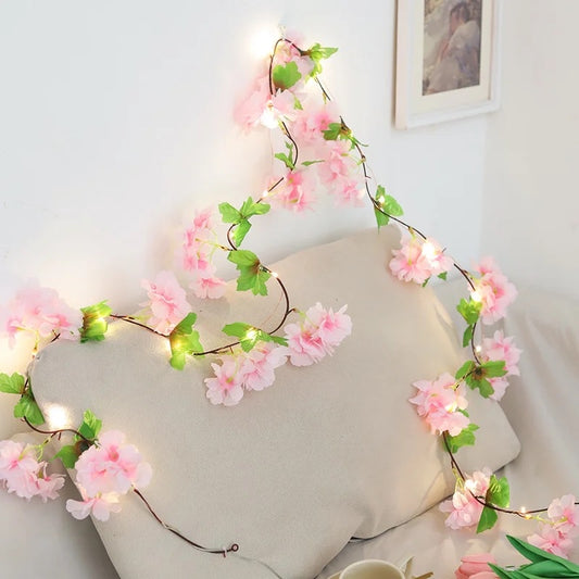 Leaf Flower Garland String Light Battery Powered (Warm White, 5 Meters)
